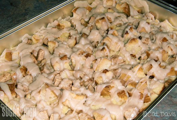 Pour the glaze over your warm bread pudding and serve.