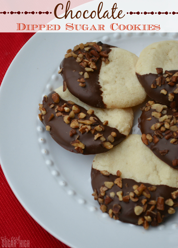 If you are looking for a quick way to spruce up your cookies any time of year, a bit of chocolate is a fabulous way to do it! You can really take almost any cookie, dip half in chocolate, and suddenly it transforms from looking good to looking amazing. Sugar cookies are perfect for chocolate dipping because their flavor works well with a variety of chocolate and different toppings. Pillsbury asked me to create some recipes using their refrigerated cookie dough to make things a bit easier. And the sugar cookies immediately stood out, but they needed some chocolate. (Doesn’t almost everything sound a little better with a bit of chocolate?)