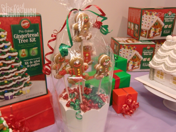 Another product we were introduced to at the last Wilton Mom Retreat was the Gingerpops Cookie Kit ($12.99) which was used to create the adorable display below. If you are short on time and looking for a fun project for the kids, this is it!