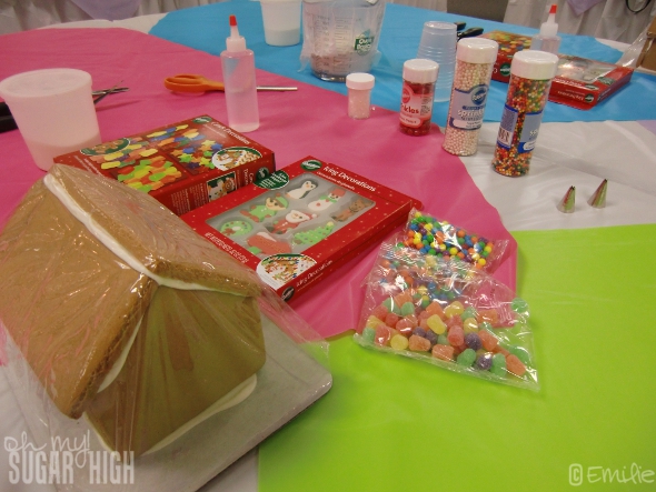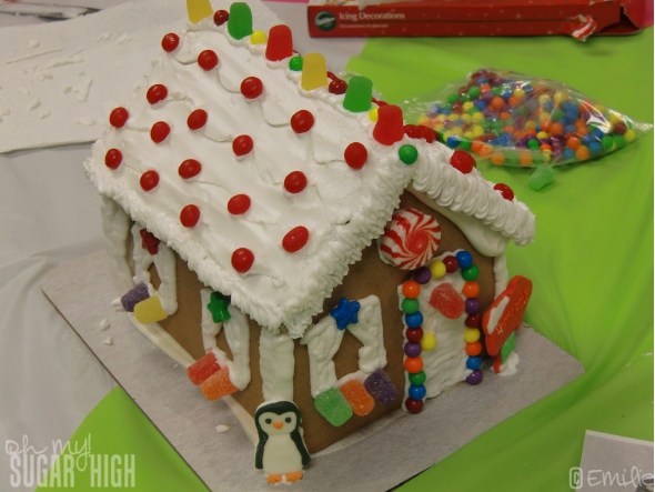 When I visited Wilton this past October we had the chance to decorate a Pre-assembled Gingerbread House Kit and use fun additional products to take our decorating to a new level. That included sugar pearls, cinnamon drops, icing decorations and more!