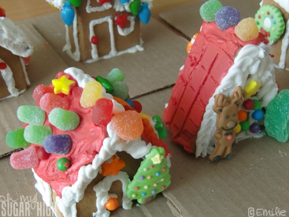 I had seen the Pre-Baked Gingerbread Mini Village Kit while visiting Wilton headquarters and I just knew I had to try it out. I was thinking they would extra cute and a lot of fun for the entire family to decorate their own gingerbread house.
