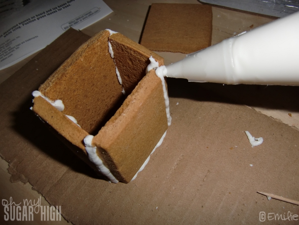 I have to admit I was wishing I hadn’t when I was putting it together. I thought I was a pro after my husband and I assembled my Haunted Halloween Gingerbread House but this was actually harder. With smaller pieces and four different house designs (two were the same cottage) to learn it took me longer.