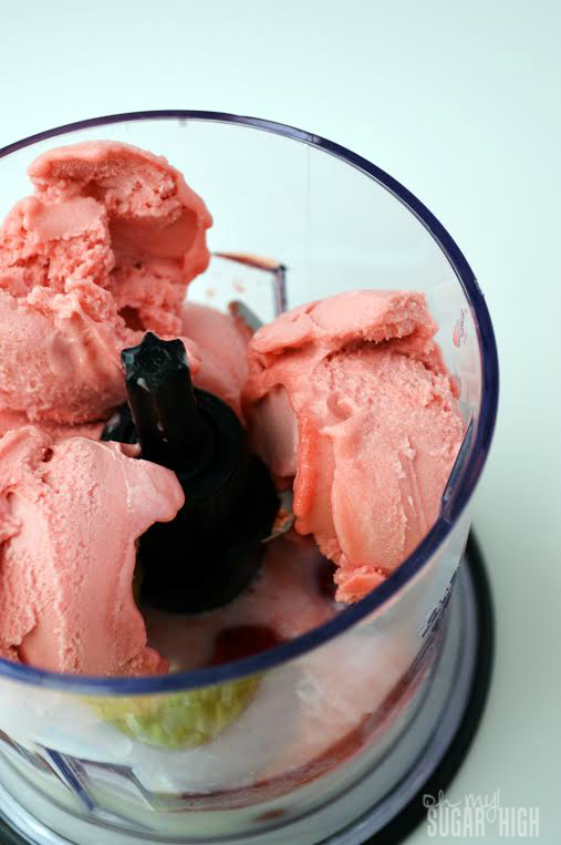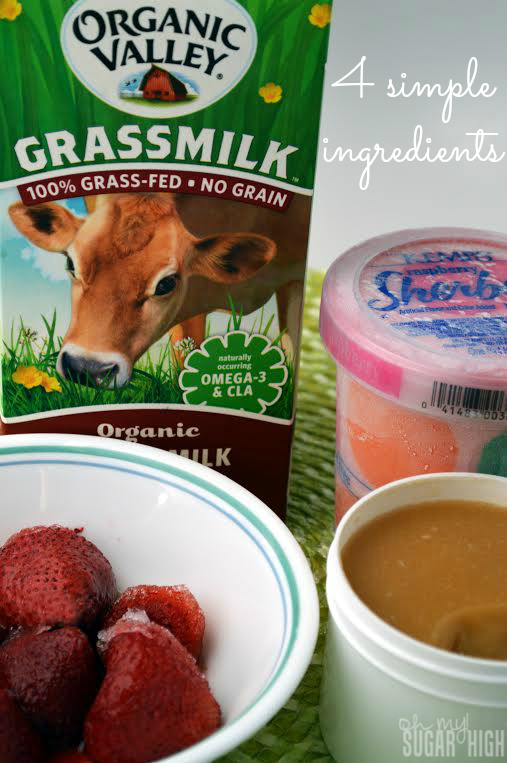 Deliciously easy with only four ingredients, you can easily switch up the flavors by changing out the frozen fruit and sherbet flavors. Frozen mango chunks and pineapple or orange sherbet would be a tasty tropical drink for example.