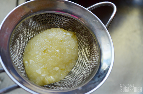 I left out the skin while grating, just because the skin was so tough. Once you drain you should be left with something that looks like this. (If you squint it almost looks like applesauce.)
