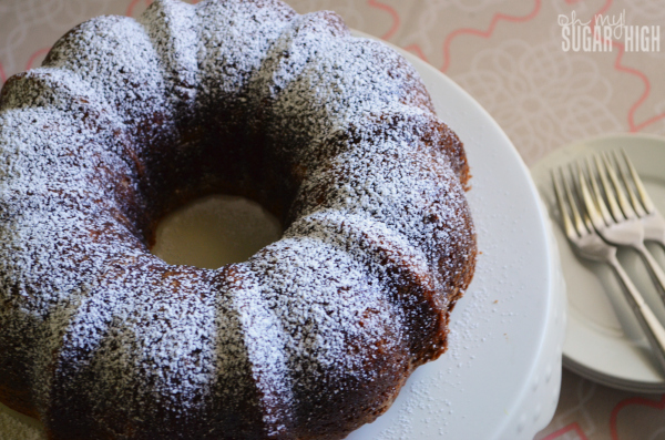 So instead of going with a plain glaze, I opted for some simple powdered sugar. The cake doesn’t need the glaze, and tasted great without. If you love something extra sweet on your cakes though, I say go for it!