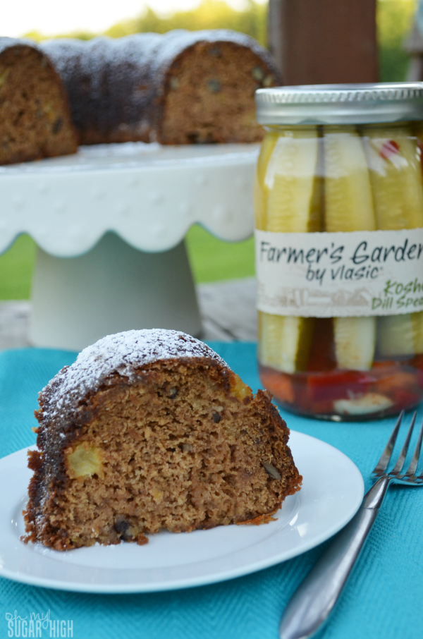 If you caught my Strawberry Rhubarb Sauce post last week, you would have read about my very special ingredient. Well, I did it again. I made a dessert using Farmer’s Garden by Vlasic pickles. Only this time, I went with kosher dill spears, and I baked a cake.