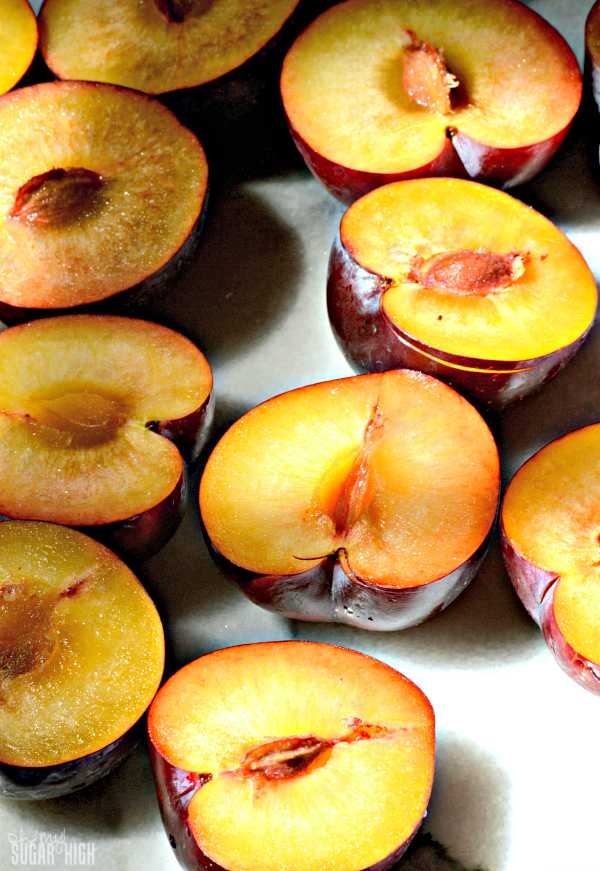 When you cut the plums in half there’s no need to remove the pits, they are much easier to remove after they’re cooked. The cornstarch is entirely optional. Manuela doesn’t like cornstarch in her food, so she skips it. If you like a sauce with a bit more liquid, you can omit it from the recipe!