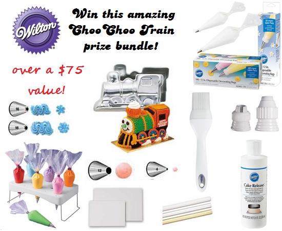 If you would like to try out a 3-D pan out yourself head on over to my other blog Baby Loving Mama and enter to win a prize bundle from Wilton worth over $75 which include this fun train pan!